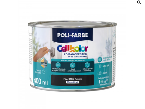 Polifarbe cellkolor magasfényű zománcfesték ral 9005 fekete 0,4l Új